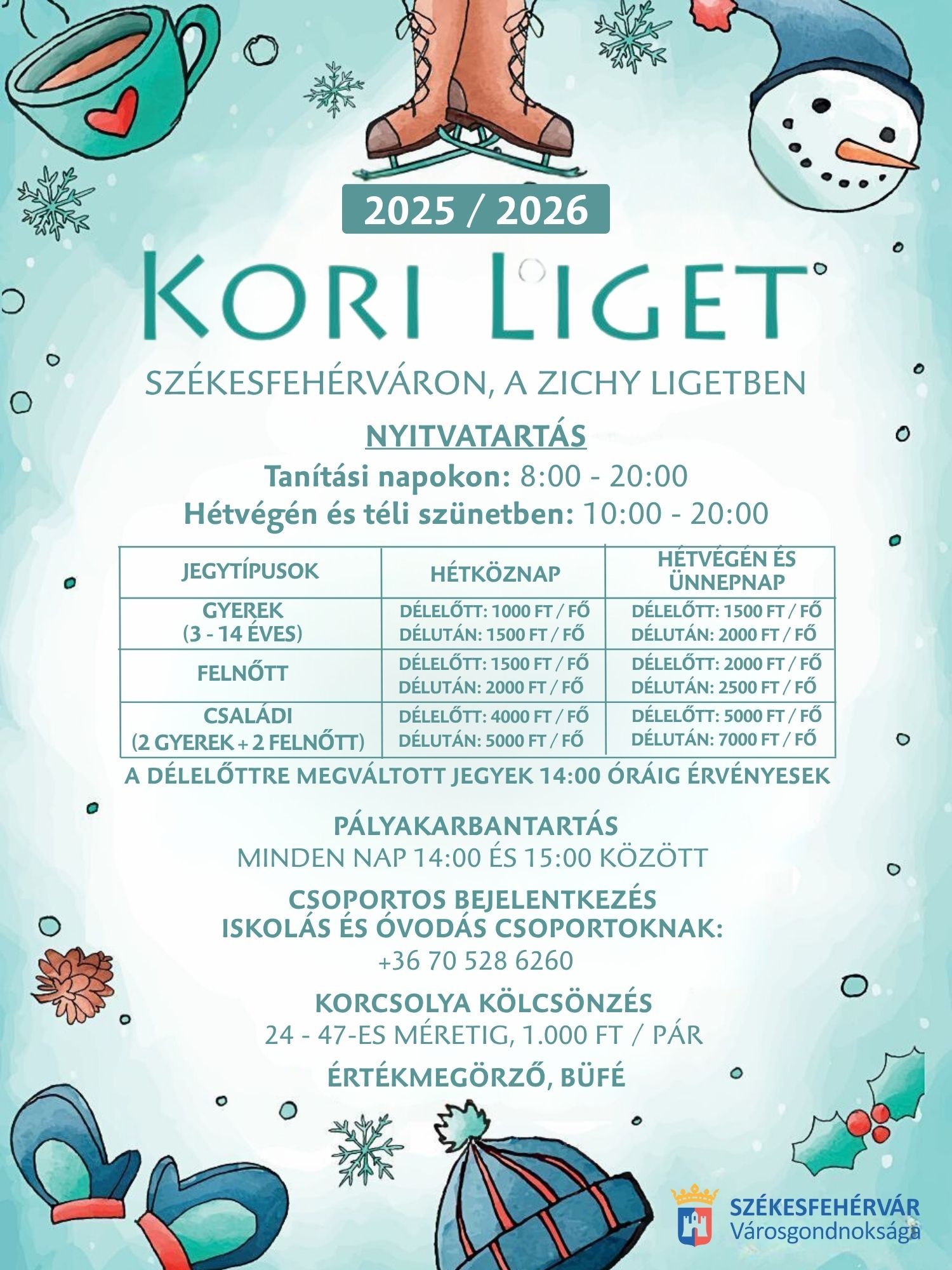 A jégpálya nagysága miatt 14:00 és 15:00 óra között pályakarbantartás lesz minden nap!