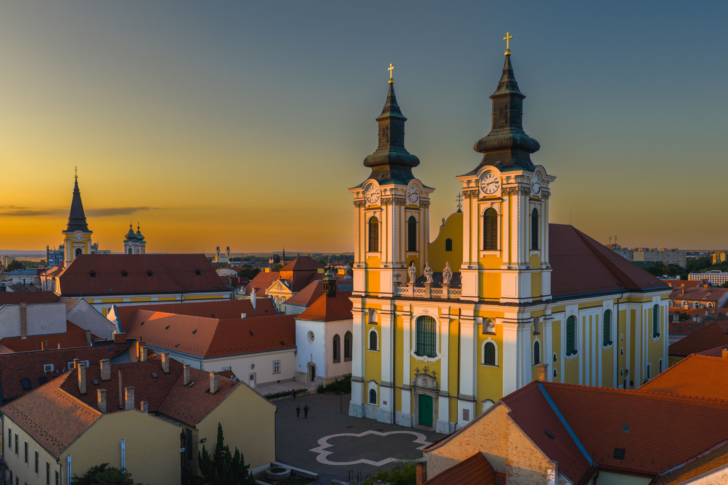 A Székesfehérvári Egyházmegye főtemploma, Magyarország egyik legnagyobb katedrálisa, melynek hatalmas tornyait IV. Béla kezdte el építtetni. A város ősi történelmi magva, az első uralkodói szállás, Géza fejedelem palotájának helyén áll, előtte a kövezetben kirajzolódik az ország első kőtemplomának alapja. A ma álló épület a középkori gótikus alapokon részben közadakozásból épült fel, Mária Terézia jelentős támogatásával. Az épület középkori eredetét bizonyító, a tornyok közepén látható gótikus ablakok csak az 1936-37-es restauráláskor kerültek elő.